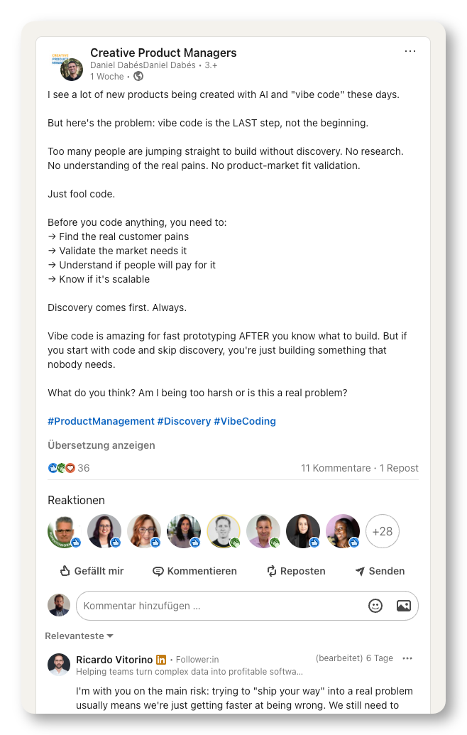 Right now, there is a loud debate about the right way to use AI in design. One camp argues that jumping into vibe coding before proper research and problem definition is a fool's game – that discovery still needs to come first, and that speed without direction is just expensive noise.